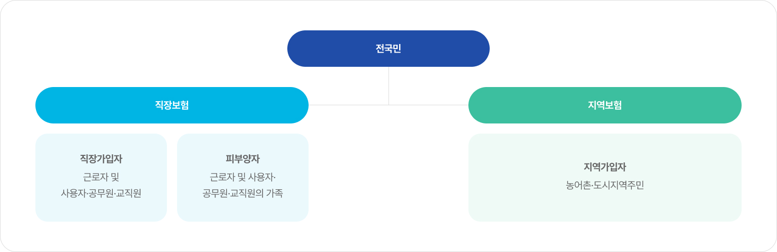 - 직장가입자 : 근로자 및 사용자, 공무원·군인·사립학교 교직원